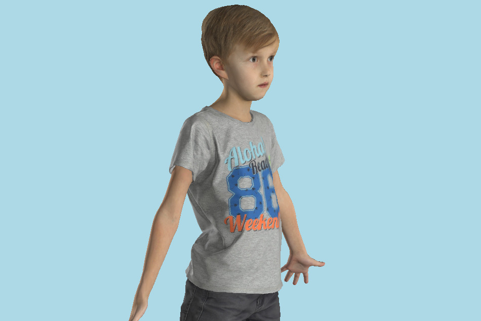 Kid 3D Model, Fully textured with UV Mapping and materials.